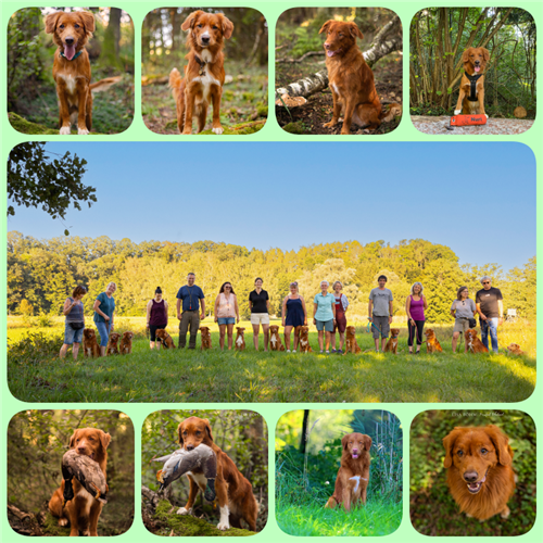 In 2 Leistungsgruppen haben wir mit unseren Hunden viele Aufgaben lösen gelernt, zb ein tolles Zauntraining und langes Lining mit Verleitmarkierungen in Form von einem Tennisballlauncher (- eine sehr große Herausforderung an unsere Toller, die sie aber durchwegs hervorragend gelöst haben).